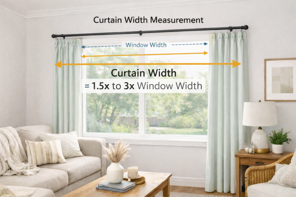 Curtain width determines how well your curtains cover the window and how full they look when closed.